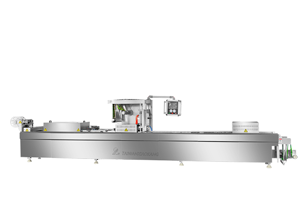 氣調盒式真空包裝機工作原理: 先將產品放在托盤里,再將托盤放入設備的放料區(qū),托盤隨著鏈條的向前運行進入到封口模具里 ,模具上升,在封口模具里將上膜附在托盤上,先抽真空(可根據用戶產品包裝要求,在抽象真空 的基礎上,充氮氣或混合氣體進行包裝)封口、(上膜和托盤封在一起)沖切,最后排氣,降膜, 包裝好的產品隨著鏈條繼續(xù)向前運行,從出料口出料。設備還附加了光電跟蹤對齊彩膜系統,為用 ...